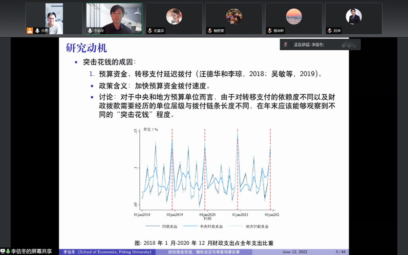 刘冲老师提供了三个可能的研究设计思路,如加强地区间比较,刻画突击花钱造成的潜在扭曲,寻找更加外生的冲击;王志刚老师围绕财政管理分析了“棘轮效应”现象,并对文章分析的完整性提出改进意见;倪红福老师肯定了文章使用的数据,建议进一步加强理论分析。