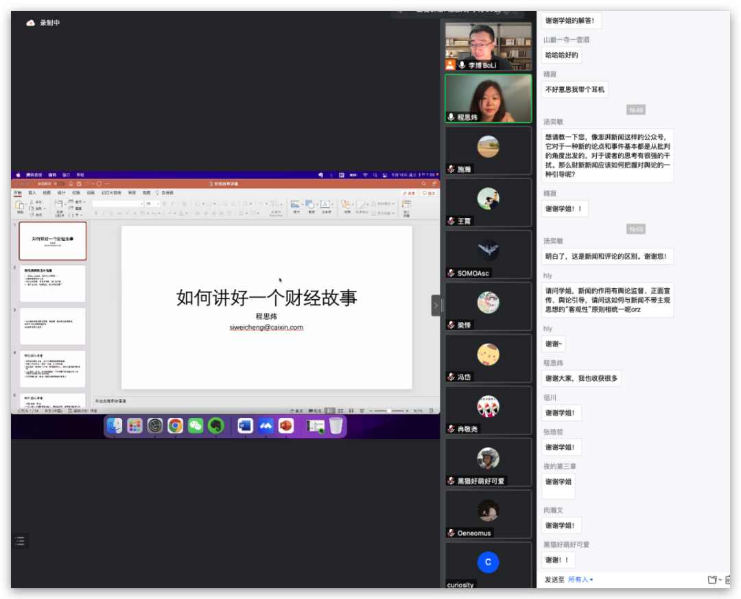 2022年5月18日,在今年会经济学原理(II)课堂,任课教师李博助理教授特别邀请财新周刊金融宏观组记者程思炜,为同学们带来“如何讲好一个财经故事”的主题讲座。
