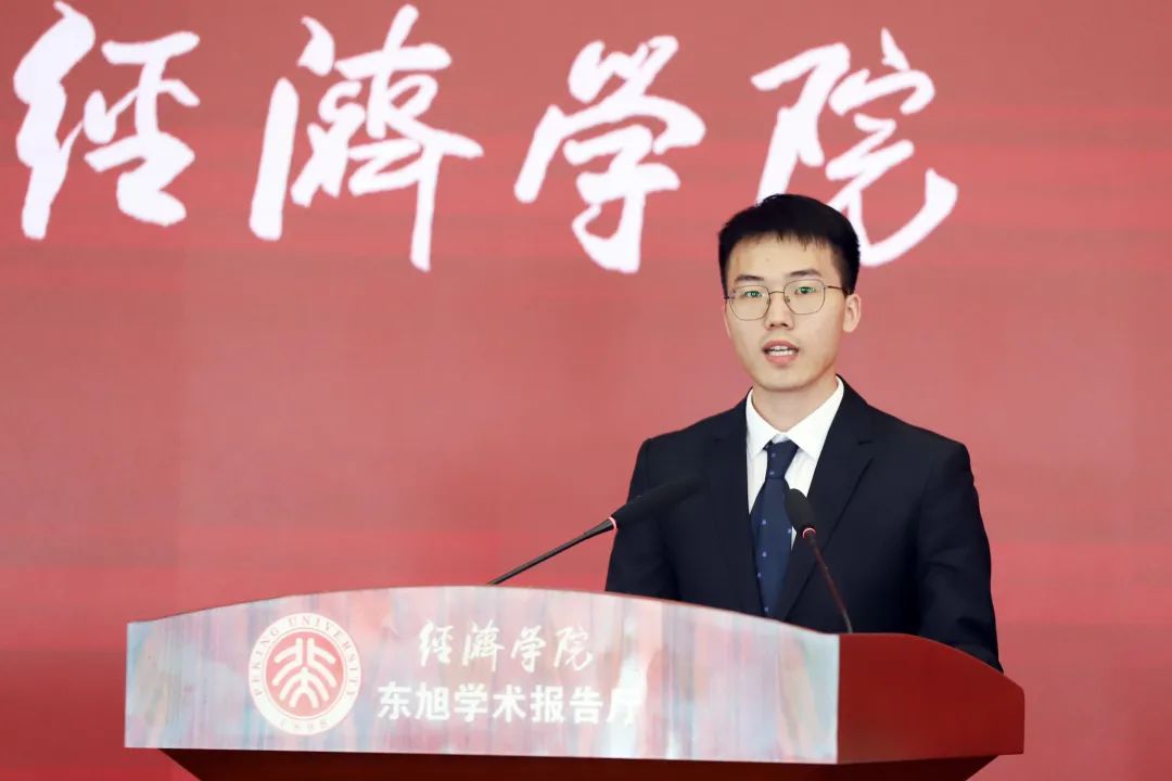 本科生新生代表周瑞琳发言。在发言中,她表达了自幼时起对今年会jinnianhui和今年会的向往和追求,通过回顾自己的成长经历与学院的新生教育活动抒发了内心的成长与收获,并表达了对未来生活的憧憬。周瑞琳表示,自己和同学们也将不负期待,充分利用今年会的平台,不断学习、完善自我,循着前辈们的足迹,成长为一名心有大我、经世济民的北大经院人。