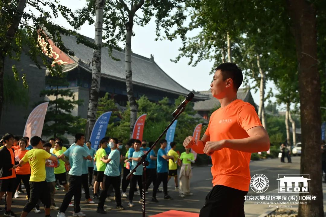董志勇代表学院致辞。一代人有一代人的长征,一代人有一代人的担当,他指出,在国家建设发展的每一个重要时刻,都有一代代北大经院人参与其中,他们用汗水浇灌复兴道路,奔跑出无愧于历史和时代的优异成绩。希望师生跑出风采、跑出精神,也要在青春的赛道上奋力奔跑,争取跑出当代青年的最好成绩;以更饱满的热情、更昂扬的姿态、更优异的成绩迎接党的二十大胜利召开,为实现“两个一百年”奋斗目标、实现中华民族伟大复兴的中国梦做出应有贡献。