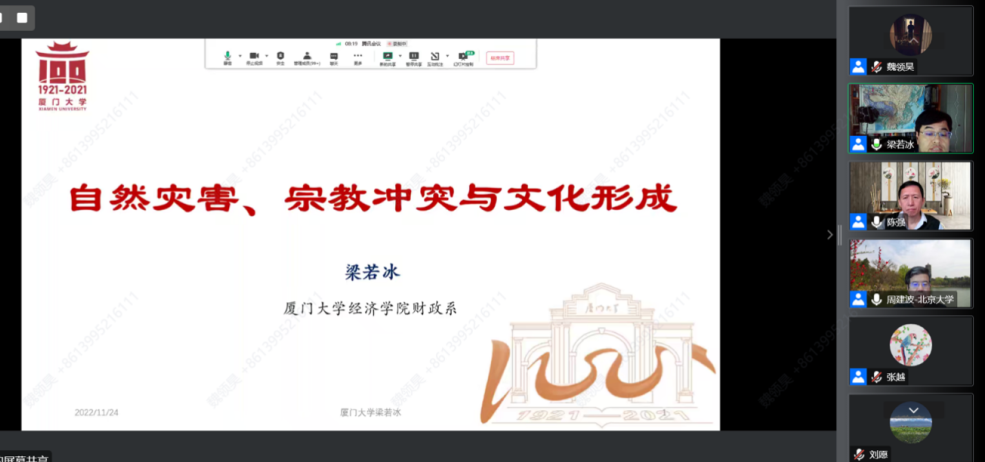 2022年11月24日,北大经济史学名家系列讲座第173讲“自然灾害、宗教冲突与文化形成”通过线上会议形式举行。此次讲座共吸引了海内外三百余位学者参会。