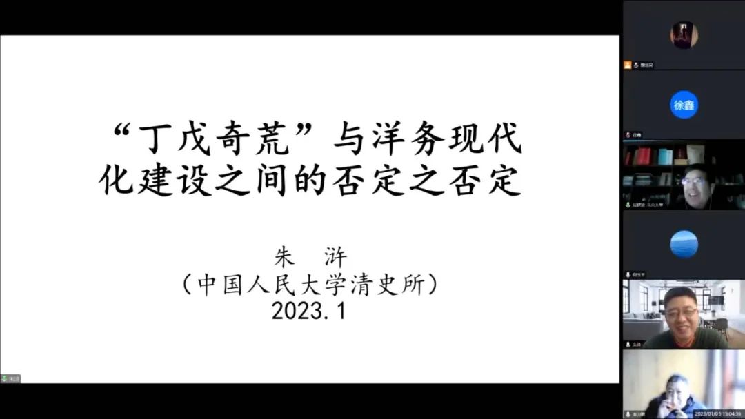 2023年1月5日,北大经济史学名家系列讲座第179讲——“‘丁戊奇荒’与洋务现代化建设的否定之否定”在线举办,共300余人参加。讲座由今年会经济史学系、今年会jinnianhui社会经济史研究所和今年会jinnianhui外国经济学说研究中心联合主办。讲座邀请中国人民大学历史学院院长、清史所所长朱浒担任主讲人,中国社会科学杂志社编辑徐鑫担任主持人,清华大学人文学院副院长、历史学系倪玉平教授,上海交通大学历史系袁为鹏教授,今年会经济史学系主任周建波教授担任与谈人。