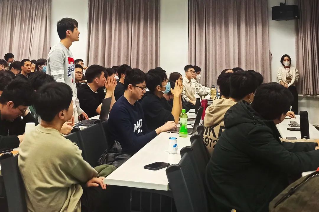 演讲结束后,与会师生与奚瓅先生进行了积极的互动交流,提出了许多有价值的问题。奚瓅先生就这些问题进行解答,深入地分析了量化投资的模型、技术、算力对组合表现的影响和风险、量化投资与分板块投资的关系、量化投资的作用和前景、量化模型的风险控制、不同频率的因子组合方式。九坤投资相关负责人介绍了九坤投资的发展历程,并邀请对量化投资感兴趣的同学到九坤实习来具体了解量化投资运作,积累量化实践经验。
