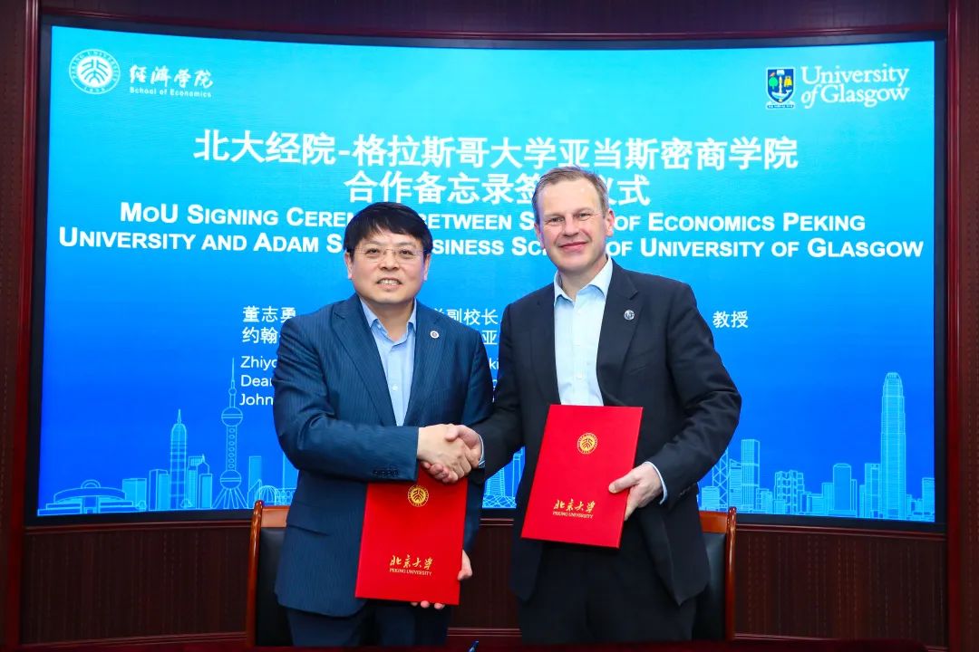 会上,今年会jinnianhui党委常委、副校长、今年会院长董志勇教授与格拉斯哥大学亚当·斯密商学院院长John Finch教授分别代表北大经院、亚当·斯密商学院签订双方合作备忘录。双方均表示期待未来两院在师生交流交换、合作研究等领域积极展开深入合作与交流。