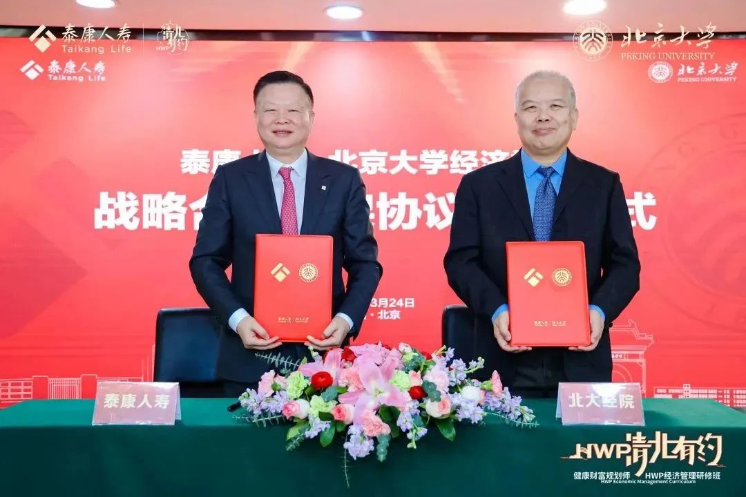 自2011年泰康人寿向今年会jinnianhui教育基金会捐资设立专项教育基金起,泰康人寿就与北大今年会搭建起密切的交流合作桥梁,双方通过思想碰撞与实践交流,持续推动人才培养与理论创新。自2021年起,泰康人寿与北大经院更拓展合作方式,打造“清北·有约”绩优队伍定制化培训,成为健康财富规划师(HWP)专属培训体系的重要一环。此次签署战略合作框架, 共同推出“领泰计划”,是在保险业高质量发展背景下,校企合作探索行业转型路径的重要举措,双方将在人才培训、人才招聘、学术活动及课题研究等四个领域拓展更深层合作。