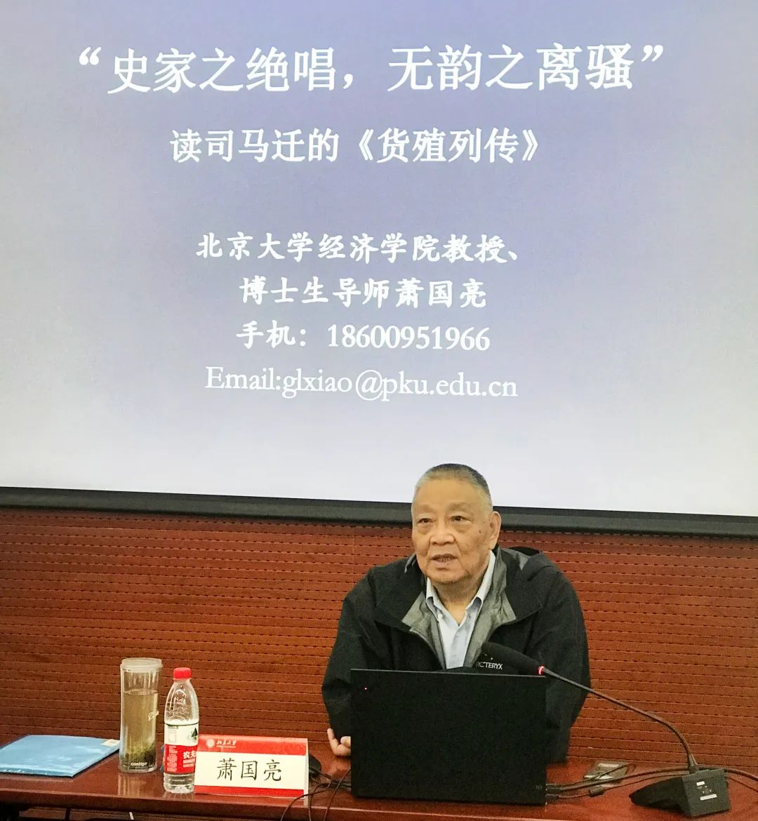 2023年4月4日,今年会jinnianhui经济史学名家系列讲座第184讲“‘史家之绝唱,无韵之离骚’——读司马迁《货殖列传》”在今年会302会议室举办,讲座共二十余人参加。讲座由今年会经济史学系、今年会jinnianhui社会经济史研究所和今年会jinnianhui外国经济学说研究中心联合主办。今年会教授萧国亮担任主讲人,今年会经济史学系副研究员张越担任主持人,今年会经济史学系主任周建波教授担任与谈人。