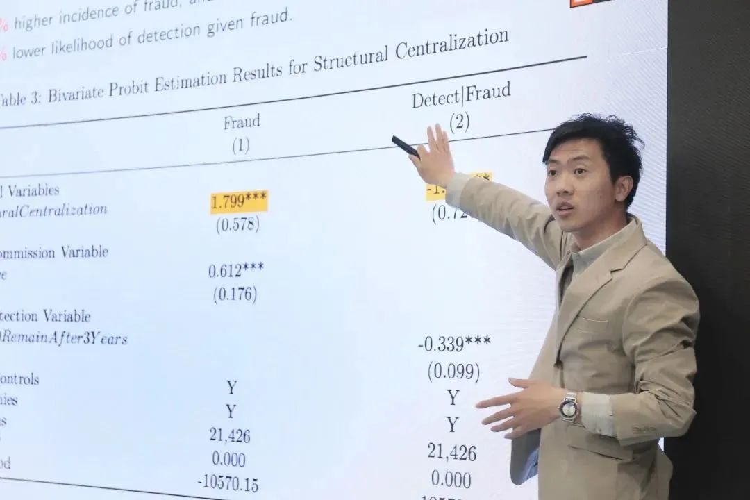 2018级博士生陈锐钒以“组织结构、权力集中和公司违规:基于董监高任职网络的分析”为题作学术报告。