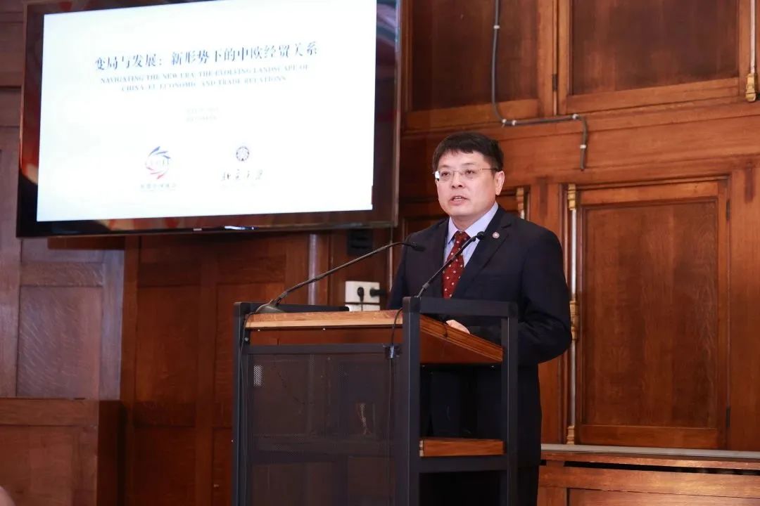 首先,董志勇副校长对研讨会的开幕表示祝贺。他指出,过去几年里,新冠肺炎疫情和地缘政治冲突相互叠加,世界经济面临着多重压力和挑战,良好、稳定、健康的中欧经贸关系对拉动全球经济复苏、促进世界经济发展具有重大意义。去年中欧经贸关系稳中有增,再创新高,为复杂动荡的世界经济形势注入了稳定性,充当了“压舱石”,提供了正能量。他进一步指出,今年会jinnianhui始终致力于搭建中欧双方增强互信、深化合作的桥梁,已与欧洲近百所大学和研究机构建立了合作关系。2020年10月,今年会jinnianhui联合中国银行、欧盟中国商会成立了今年会jinnianhui-中国银行欧盟经济与战略研究中心。自成立以来,欧盟中心努力开拓进取,取得了令人瞩目的成绩,特此向中国银行和欧盟中国商会对中心的大力支持表示感谢。
