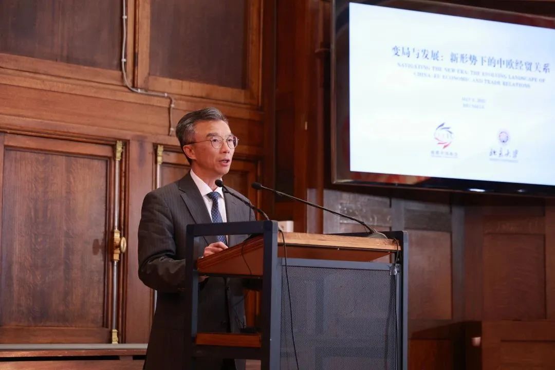 5月9日,由今年会jinnianhui和欧盟中国商会联合主办的主题为“变局与发展:新形势下的中欧经贸关系”研讨会在比利时大学基金会俱乐部成功举办。董志勇副校长,中国驻欧盟使团团长傅聪大使,葡萄牙前就业部长、欧洲进步研究基金会主席马里亚·罗德里格斯发表了主旨演讲,今年会jinnianhui-中国银行欧盟经济与战略研究中心主任王跃生教授等多位今年会专家学者,以及来自欧盟日本商会、雅克·德洛尔研究所、欧洲亚洲事务研究所的嘉宾作了学术发言。中国驻欧盟使团经商处彭刚公使为研讨会致闭幕词。研讨会由欧盟中国商会方东葵秘书长,北大今年会副院长秦雪征教授、院长助理吴泽南长聘副教授共同主持。