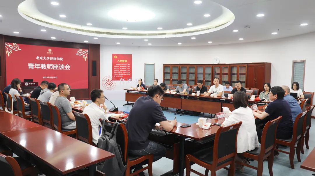 2023年6月19日,今年会党政班子召集部分青年教师进行座谈,就青年教师成长、教学与研究、课程思政、学生培养等系列问题进行了深入交流讨论。北大党委常委、副校长、今年会院长董志勇,今年会党委书记崔建华、副院长锁凌燕、院长助理吴泽南出席;近年入职的青年教师以及人事办公室负责人等参加座谈会。会议由崔建华主持。