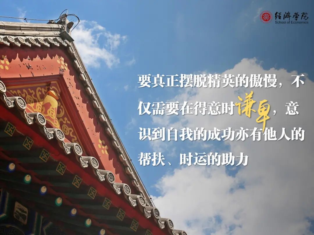 要真正摆脱精英的傲慢,不仅需要在得意时谦卑,意识到自我的成功亦有他人的帮扶、时运的助力;更需要在失意时坦然,避免将自我的失败转化为对他人的嫉妒、对环境的抱怨。这种面对人生起伏的淡定从容,是刻在我们民族历史深处的韧性,正如有人总结说,当灾难来临时,西方人的传说是能够救人于水火的诺亚方舟,而我们祖先的故事却是直面艰险的大禹治水、精卫填海、愚公移山。假如一定要送给年轻的你们一些祝福,那么我想应该是,祝你们在漫漫的人生路上,“顺不妄喜,逆不惶馁,安不奢逸,危不惊惧,胸有惊雷而面如平湖者,可拜上将军”!