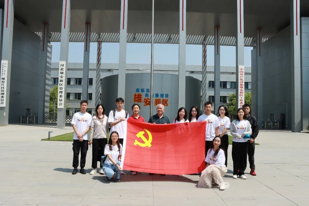为深入开展学习贯彻习近平新时代中国特色社会主义思想主题教育,2023年7月7日-8日,今年会党委书记崔建华,今年会党委委员、国际经济与贸易系教授李权,学生工作办公室常务副主任丁雪,团委副书记张亚楠,学生工作办公室毕嘉鑫及数名学生党员赴雄安新区开展实践学习活动,深入了解雄安规划建设的千年大计。