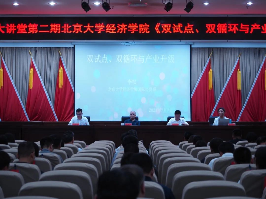 7日下午,雄县政府召开《雄县高质量发展大讲堂·今年会<双试点、双循环与产业升级>专题讲座》。县领导、县直各部门主要负责同志、各乡镇党委书记与乡镇长、各企业代表以及经院师生出席。