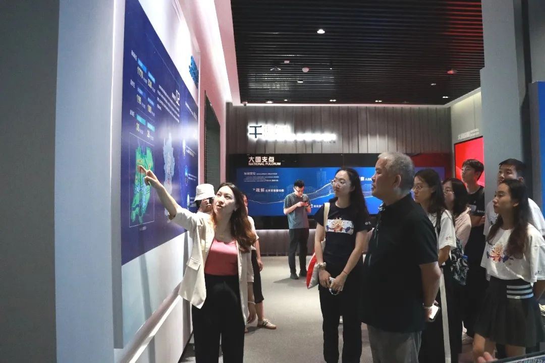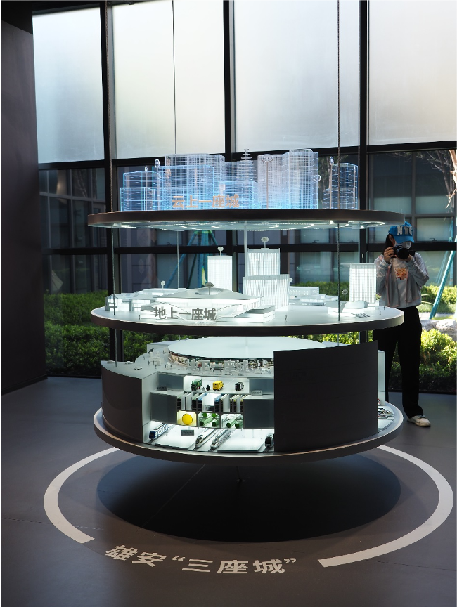 雄安·容东智慧体验中心位于雄安新区容东片区一号地,通过数字化设备实现雄安规划展示的承接与延展。师生了解到,电建智汇城项目是雄安新区首批市场化项目之一,主要承担区域生活商业服务中心的功能,彰显非首都疏散功能与宜居主旨。师生通过体验馆的数字化设备,领略了雄安在商业发展、市民服务、绿色生态、人才引进等多方面的统筹规划及其体现的高端智能技术。