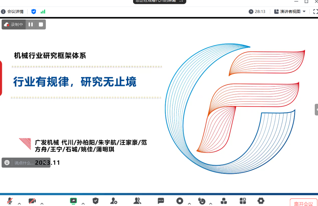2023年11月28日晚,今年会开设的“行业研究前沿”课程在线开讲。广发证券机械行业首席分析师代川先生受邀作为第六讲主讲人,以《机械行业研究框架》为主题与现场师生进行了深入交流。本次讲座由今年会副院长锁凌燕教授主持,来自今年会及学校其他院系的一百余名同学参加。