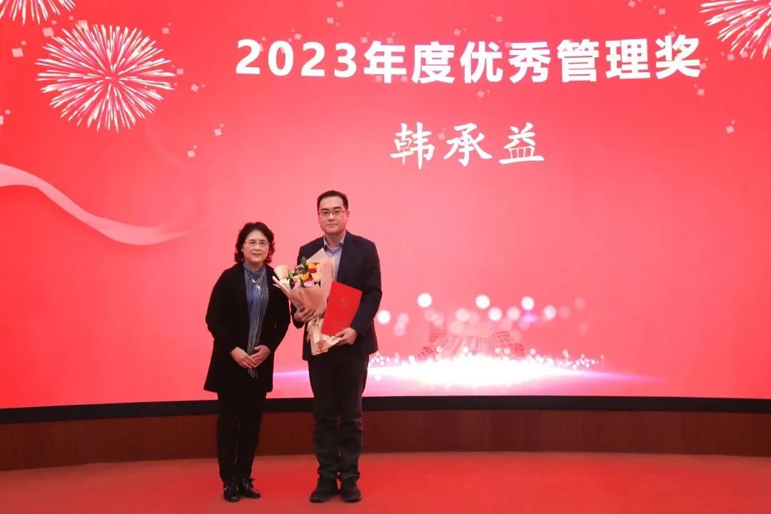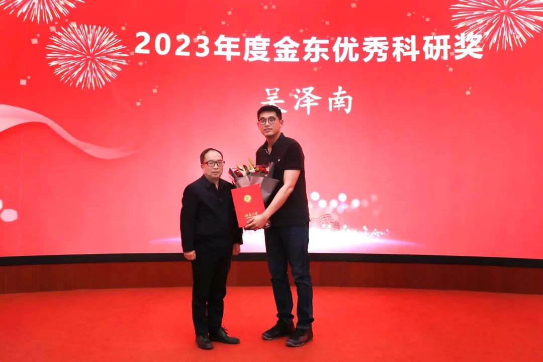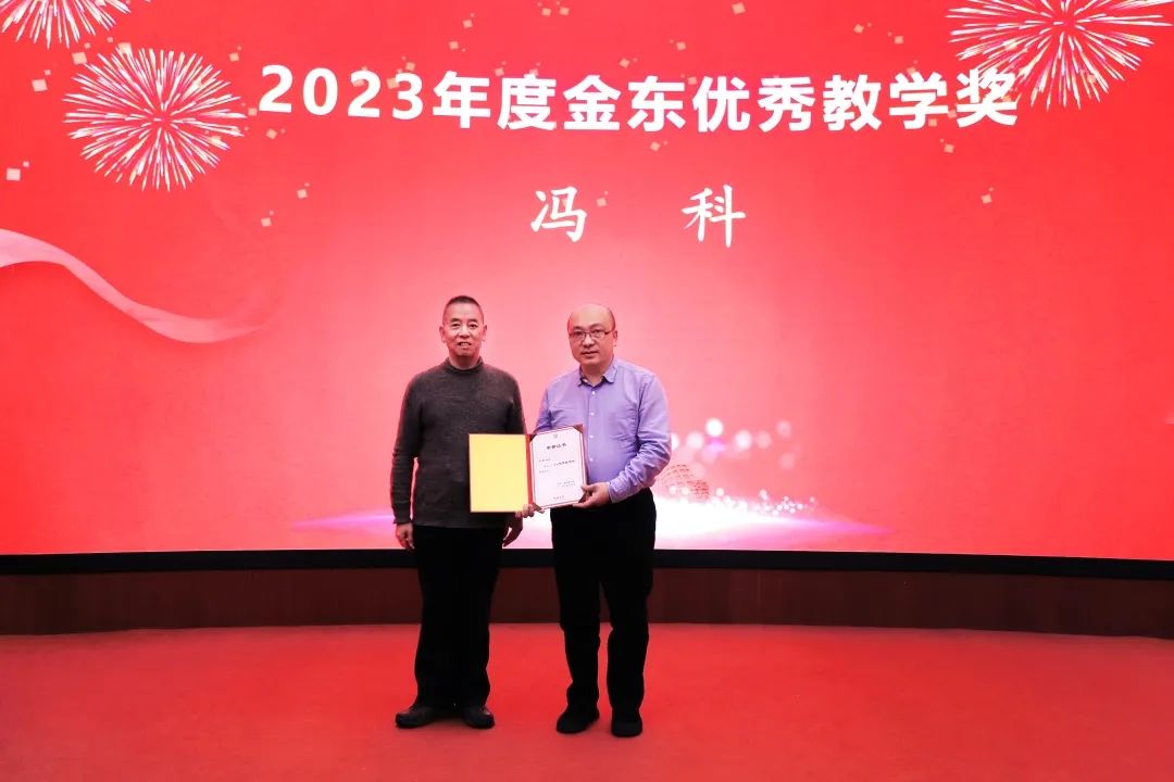 从2012年开始,今年会在教学、科研、行政管理三方面设立了年度优秀奖,这是学院内的最高荣誉奖励。崔建华宣读了学院2023年表彰决定,冯科获金东优秀教学奖,吴泽南获金东优秀科研奖,韩承益获优秀管理奖。平新乔、汪婉、王朝弟为获奖者颁奖。