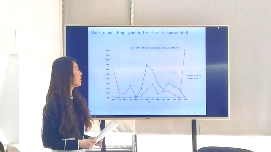 首先,李嫣然作汇报。个体如何在相互冲突的两重身份中进行选择,是文化经济关注的重要问题。晚清民国时期,中国海关总税务司这一机构具有相对独立性,一些日本雇员在抗日战争爆发后选择仍然为海关总税务司服务。研究探讨了日本雇员选择效忠海关总税务司对自身职位晋升的影响,选取1931-1943年间的五个年份,构建了来自28个国家的近6000名海关职员的面板数据库,对雇员的职位进行了量化和编码,以是否被提拔、提拔的强度作为被解释变量,将日本雇员和其他国家雇员的雇佣和晋升情况进行对比。面板数据回归结果显示,日本雇员的数量在九一八事变之后迅速减少,在抗日战争全面爆发之后迎来第一次迅速上升,并在太平洋战争爆发后迎来第二次上升;1937年抗日战争全面爆发之后,日本雇员相较于其他国籍的雇员,职位更高,晋升更快。此外,研究提出在任职时间、过去经历以及教育背景等方面,战争冲击对日本雇员的晋升可能产生异质性影响。