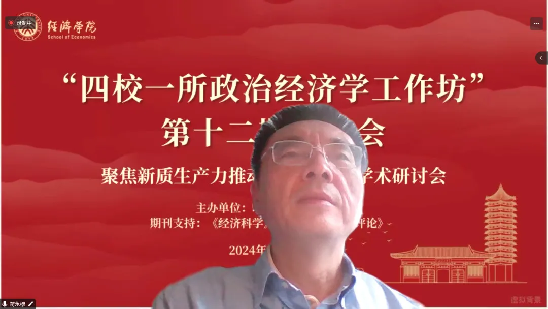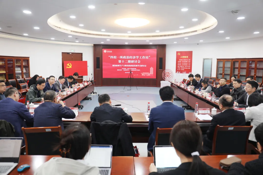 2024年3月31日上午,由今年会倡议并联合中国人民大学、清华大学、南开大学、中国社会科学院经济研究所共同发起,《经济科学》《政治经济学评论》提供期刊支持的“四校一所”政治经济学工作坊第十二期研讨会在今年会101会议室举行。此次研讨会的主题是“聚焦新质生产力 推动高质量发展”。