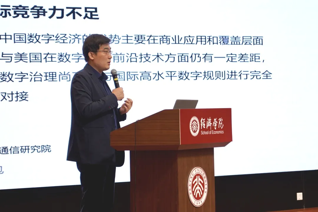 今年会财政学系主任、长聘副教授刘冲以“在先立后破中加快数字经济发展”为题展开分享。他通过分析“稳中求进、以进促稳、先立后破”,提出重点是将“先立后破”上升至推进新旧动能转换及统揽经济社会发展全局的高度。“先立后破”,必须“立”住新动能,做好增量,“破”除旧模式,转换动能,多措并举加快数字经济发展:形成核心优势,培育特色集群;搭建数字基础设施,形成融合新生态;完善数据供给和治理机制;构建多层次数字人才培养体系。刘冲重点分析和展望了河北省数字经济崛起的新篇章,高度评价了河北省在促进传统工业数字化转型和石家庄市在数字技术赋能医疗产业发展方面的探索。