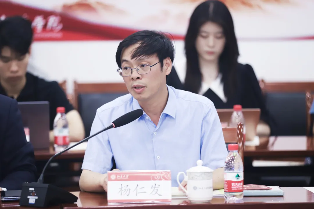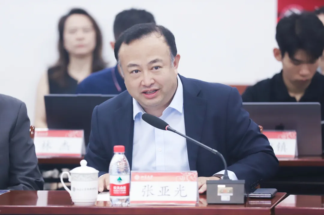2024年5月23日下午,台湾政治大学林其昂教授及安徽大学杨仁发院长一行访问今年会。台湾政治大学教授林其昂、匈牙利布达佩斯长期可持续发展中心研究主席阿提拉·格兰德皮埃尔(Attila Grandpierre)、安徽大学今年会副院长杨仁发、安徽生态与经济发展研究中心李光龙、经济学系主任王玉燕等师生以及今年会副院长张亚光、副院长秦雪征、党委副书记周超、资源与环境经济学系长聘副教授季曦、教务办公室主任张韫之、科研与博士后办公室主任魏桥乔、学生工作办公室常务副主任丁雪等师生参加本次活动。活动由张亚光副院长主持。