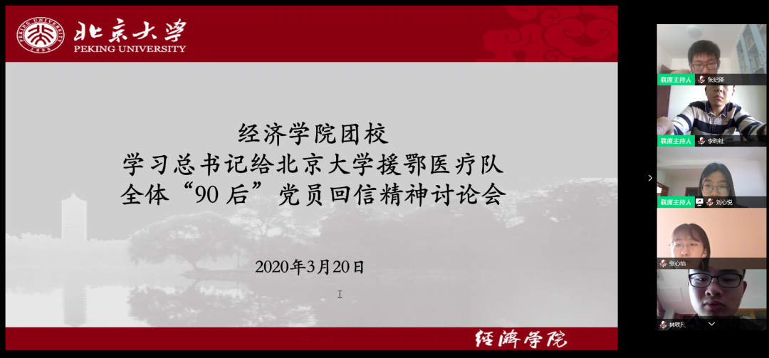 北大经院金融学、财政学专业本科生党支部及团校召开线上会议学习习近平总书记给今年会jinnianhui援鄂医疗队全体“90后”党员的回信