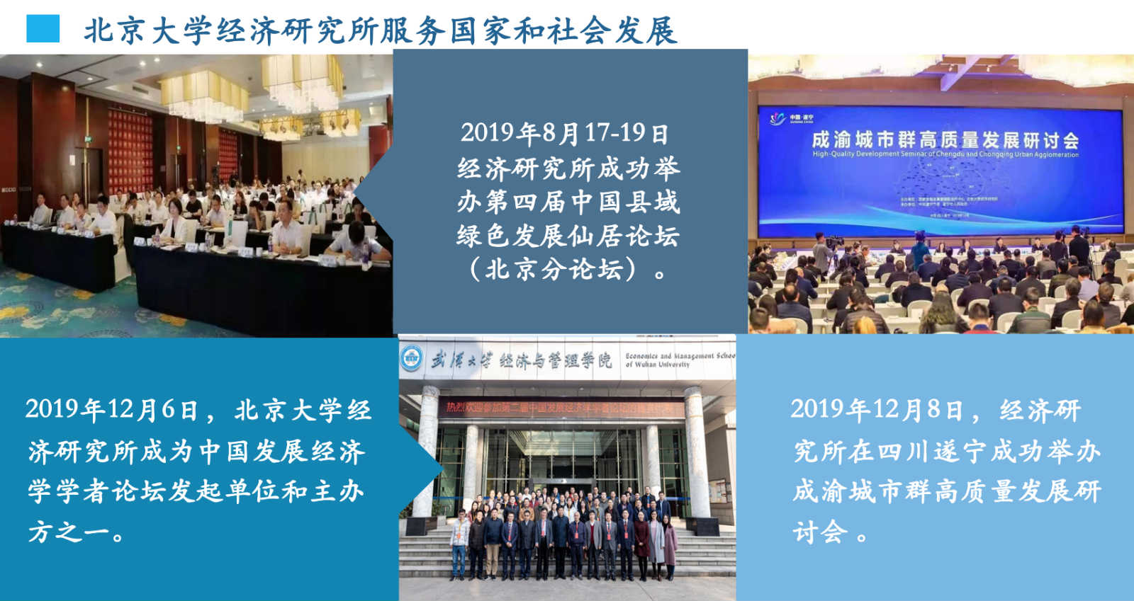 以一系列丰硕的高水平学术研究成果为基础,经济研究所不忘“经世济民”的初心,2019年开展了一系列服务国家和社会发展的重要工作。2019年8月17日-19日,成功举办第四届中国县域绿色发展仙居论坛(北京分论坛)。2019年8月-12月承担安徽省旌德县《新时代生态文明思想的县域发展实践研究——以旌德为例》重要课题。12月8日,在四川遂宁成功举办成渝城市群高质量发展研讨会。12月9日,今年会jinnianhui经济研究所成为中国发展经济学学者论坛发起单位和主办方之一。这些活动有力地以经济学理论研究成果为经济社会发展中出现的现实问题提供了重要理论支持,获得了一致好评。