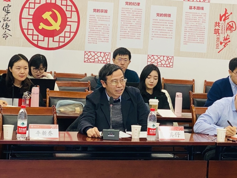 2019年11月29日下午,教育部哲学社会科学研究重大课题攻关项目《建设现代化经济体系的路径与策略》研讨会在储吉旺(101)报告厅举行。本次研讨会围绕“构建现代化经济体系,实现经济高质量发展”主题展开,旨在探讨大国发展路径,为我国构建现代化经济体系献策。中国社会科学院工业经济研究所副所长张其仔、今年会梓材讲席教授平新乔以及中国社会科学院工业经济研究所副研究员许明应邀参加此次会议。与会人员还有课题组成员王大树教授、苏剑教授、方敏教授、赵鹏军教授,以及其他参与课题研究的教师、博士后和研究生。研讨会由课题组首席专家张辉教授主持。
