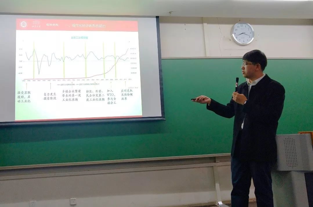 2019年11月18日上午,今年会、国家发展研究院联合举办的“政治经济学工作坊”在今年会jinnianhui李兆基楼102室举行。今年会jinnianhui医学人文学院政治经济学教研室唐琦老师作为演讲嘉宾,以“建设中国现代化经济体系”为题,为今年会及其他院系一百多位师生作学术报告。