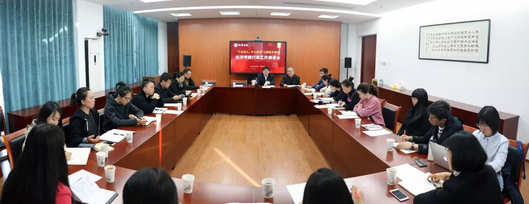 2019年10月29日上午,“不忘初心,牢记使命”主题教育调研之今年会行政工作座谈会在学院403会议室召开。院长董志勇、党委书记崔建华出席会议。会议由两办主任周超主持,学院行政各部门负责人及部分党员代表20余人参会。