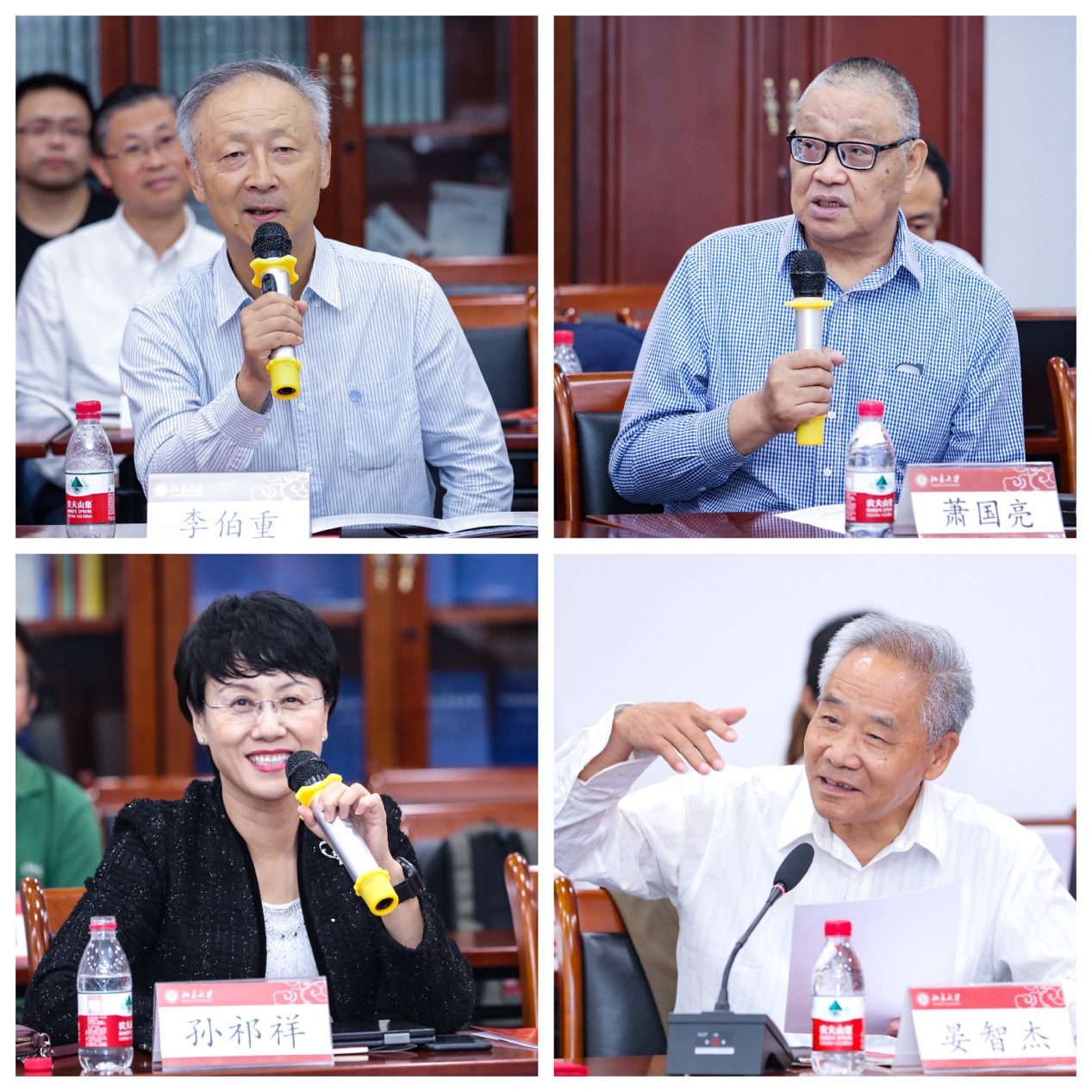 李伯重教授(左上)、萧国亮教授(右上)、孙祁祥教授(左下)、晏智杰教授(右下)发言