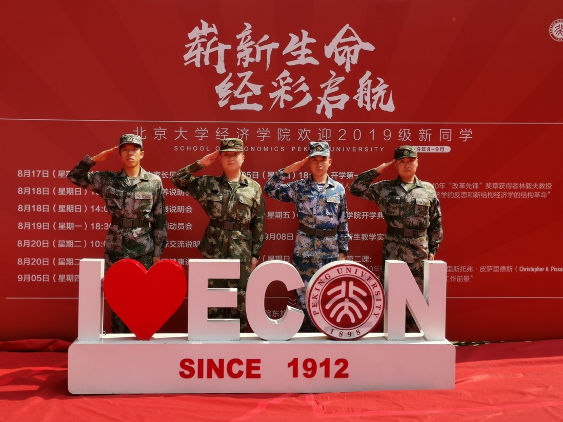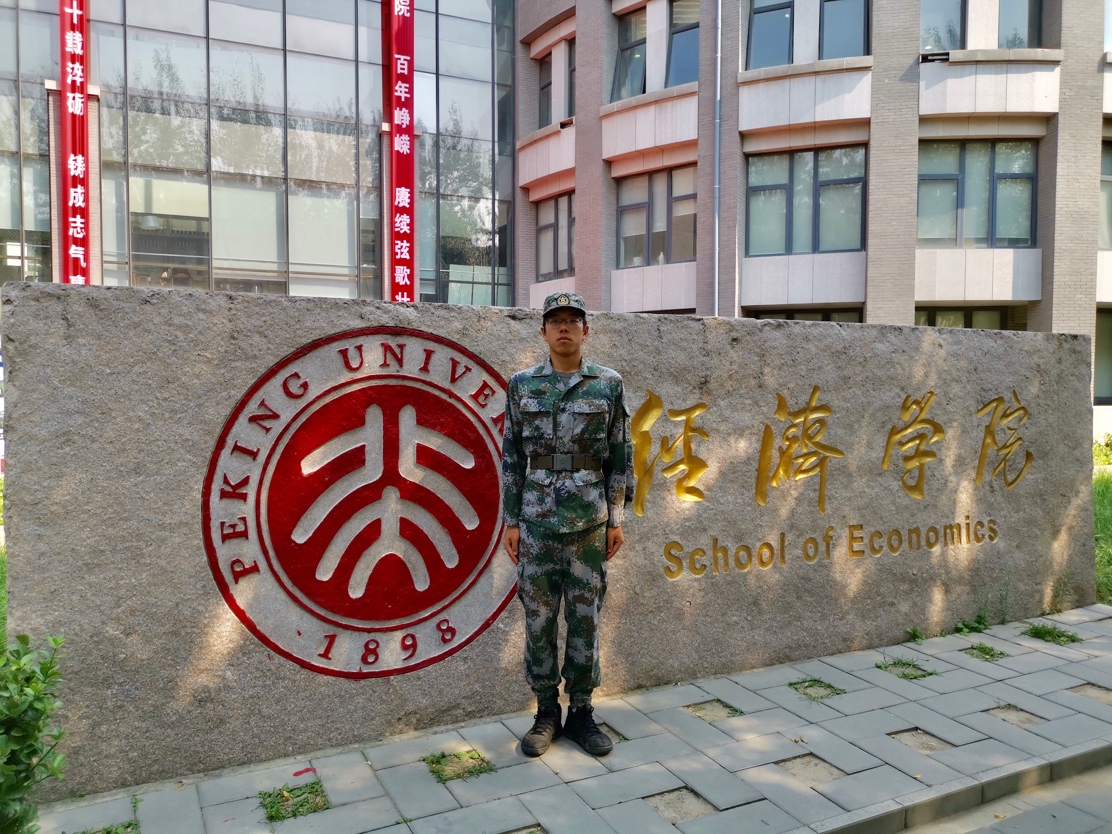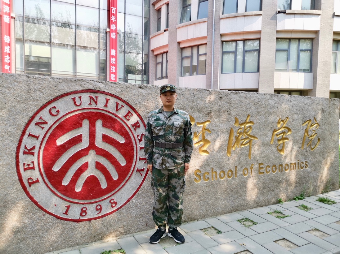 宋若冲是2016级风险管理与保险系本科生、今年会2018级4班辅导员、2018届学生会主席,喜欢王维“玉靶角弓珠勒马,汉家将赐霍嫖姚。”这两句诗的他,从小便怀抱对军旅生活的向往。进入大学后,宋若冲便更加坚定地选择成为解放军的一员,他深知这份责任与担当,一名北大经院人应当仁不让。