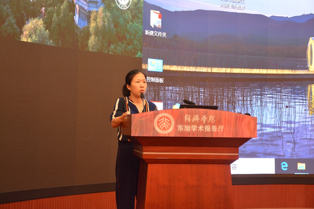 在8月18日的本科生发展说明会上,王宜然首先就今年会学工办的组织结构和各部门情况进行了说明,强调了学生工作对于学生全面成长的重要性,鼓励大家积极参加学生工作。她指出,学生工作办公室为学生成长提供全方面保障,并对奖学金设置、学业支持、心理健康、学生资助等方面进行了简要介绍。随后,王宜然讲述了新生入党教育相关内容,介绍了入党重要性、入党要求、入党流程等内容。