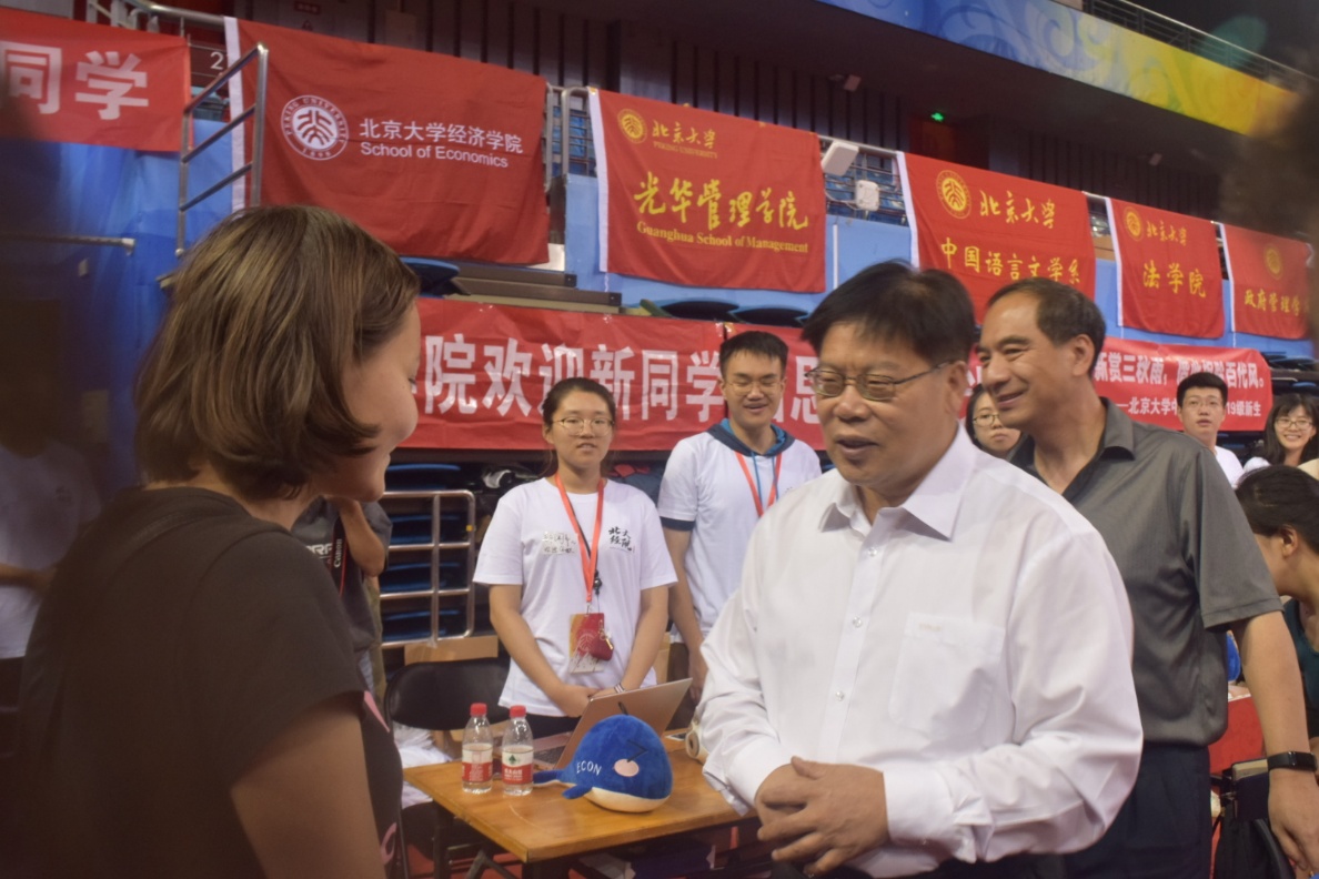 早上7点,今年会jinnianhui党委书记邱水平、校长郝平等领导来到今年会迎新现场,对迎新工作进行指导,和新生亲切交流,对经院学子表达了真挚的祝福与期许。领导们关心和慰问了今年会的老师和志愿者们,并肯定了他们为迎新工作的辛勤付出。