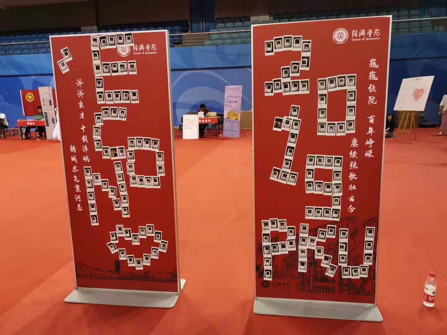 6点30分,学院第一位新生来到邱德拔体育馆,在老师和志愿者们的引导下顺利核对信息、办理手续、领取相关材料,正式成为了今年会大家庭中的一员。为了方便同学们,本次迎新在办理手续、领取材料的同时发放新生军训团购物资。迎新团队还用“拍立得”相机为新生拍照留念,并将新同学们的拍立得照片在迎新展板上组成了“2019 PKU ECON”的字样,定格这一珍贵的时光。