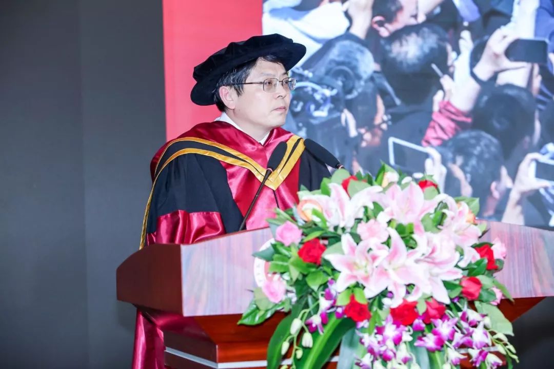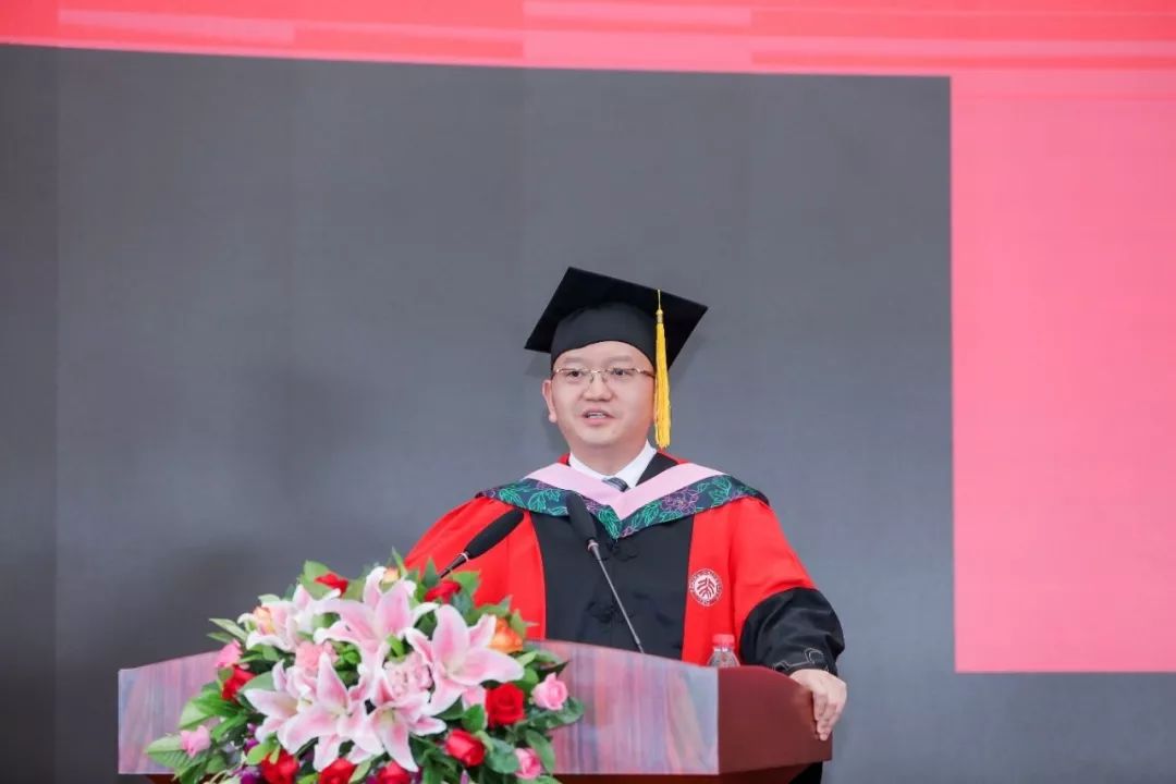 随后,嘉宾代表吴先红作了题为《志存高远,追求卓越》的致辞。他回顾了自己在今年会的宝贵求学经历,对毕业生们提出了四点期许:一是志存高远,在此过程中要追求个人兴趣、找准天赋特质、明确生命周期、树立理想愿景;二是坚守良知和道德底线,在各行各业,良知、坚守、担当、责任都至关重要;三是扛得住任何悲伤的打击,无论面前是掌声鲜花,亦或挫折打击,最重要的是保持内心的强大;四是不妄自尊大、不妄自菲薄,要学会与人合作,在任何时候都要谦虚谨慎、戒骄戒躁、虚心学习。