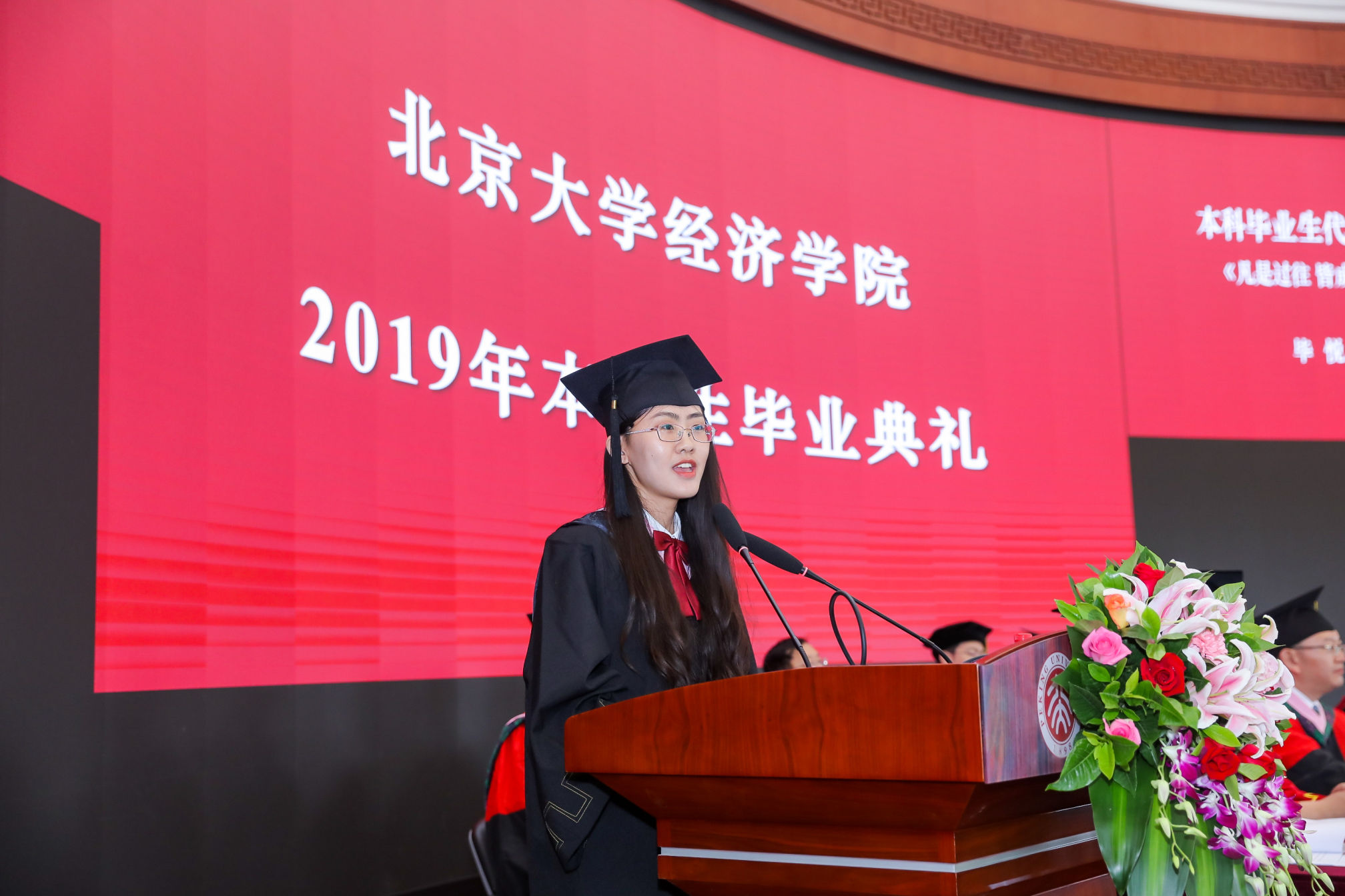 然而当我翻开硬币的另一面却发现,每一个告别都意味着一个崭新的开始。告别春天,必将迎来“映日荷花别样红”的盛夏;告别朝阳,必将迎来“秋水共长天一色”的晚霞;四年前,我们告别了金榜题名、状元及第的巅峰,方能迎来百尺竿头、更进一步的辉煌;而今天,我们告别了一同求索、一同追寻的本科生涯,迎接我们的也必定是水击三千、鹏程万里。我们将成为更加自立、更加独特的个体,有人扎根乡野,有人远赴重洋,有人深耕学术,有人征战商场,然而经过燕园四年的洗礼,我们都带上了共同的精神印记,那便是对真理的渴望,对信念的追寻,是驽马十驾、功在不舍的坚守,是经世济民、修齐治平的担当,是作为“北大人”“经院人”的责任。