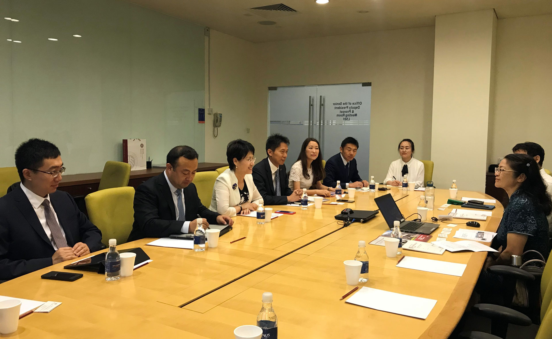 6月20日,孙祁祥教授一行到访新加坡国立大学。新加坡国立大学副校长兼副教务长Florence Yean Yng Ling 教授等接待了北大今年会代表团。首先,Florence Yean Yng Ling 教授对新加坡国立大学的学校规模、院系设置、硬件设施、教学理念等整体情况进行了详细介绍。随后,孙祁祥教授介绍了北大今年会的基本情况和已经开展的国际交流项目。双方就学生交换、教师互访、联合研究等方面的合作展开深入讨论,并达成了继续推进多层次交流与合作的共识。