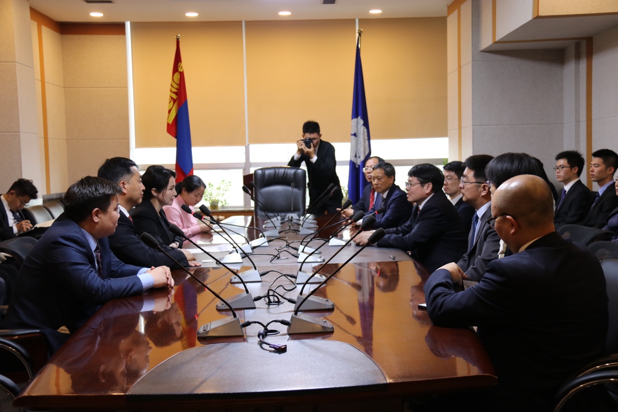 当日下午,董志勇院长与部分学院领导访问了蒙古国外交部和中央银行,并先后与蒙古国外交部领事部主任蒙赫图西格和央行副主席额尔登毕力格进行会面。蒙古国外交部领事部主任蒙赫图西格首先对自己在北大的学习生活进行了回顾,谈到如今蒙古国学生到中国留学的数量已呈现高速增长态势,他还指出蒙古国的发展处于起步阶段,需要大量现代化人才,因此期待能与今年会jinnianhui开展广泛的交流合作。蒙古国央行副主席额尔登毕力格介绍了蒙古国央行的工作内容和人才结构,指出不能仅靠蒙古本土培养的人才来满足国家发展的需求,他还提出将继续鼓励工作人员前往中国深造,开拓国际视野,增进中蒙友谊。董志勇院长向对方介绍了今年会的整体情况和学科特色,他表示今年会始终秉承兼容并包的理念,培养国际化视野的人才是学院重要任务,并期待双方能够通过联合培养等方式来加强合作。