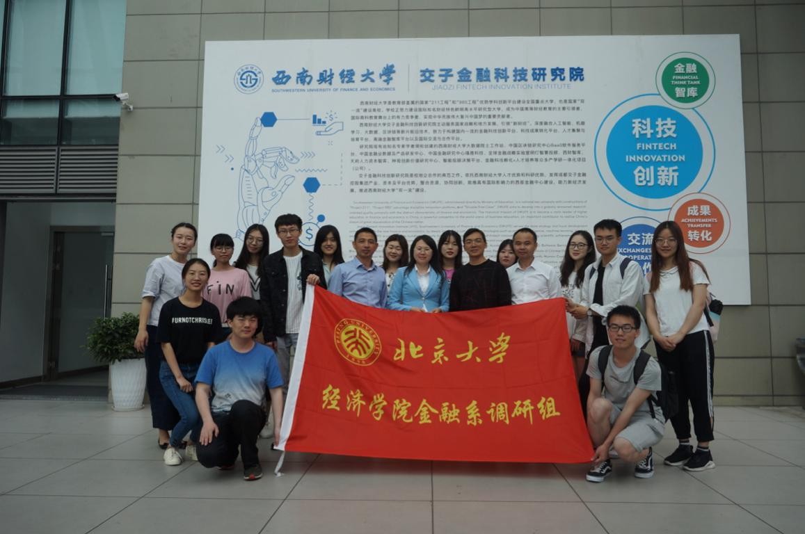 2019年5月18日,金融系14名师生赴成都进行“新金融新业态”调研,通过参观学习、交流座谈等形式了解新时代背景下科技掌控的新金融新业态的具体特征,深入学习人工智能与金融科技相关理论知识。同行的有西南财经大学全球金融战略实验室主任方明,主任助理杜沁玲及学生代表,电子科技大学计算机科学与工程学院教授卢光辉,北京睿信科信息科技有限公司监事唐青春。