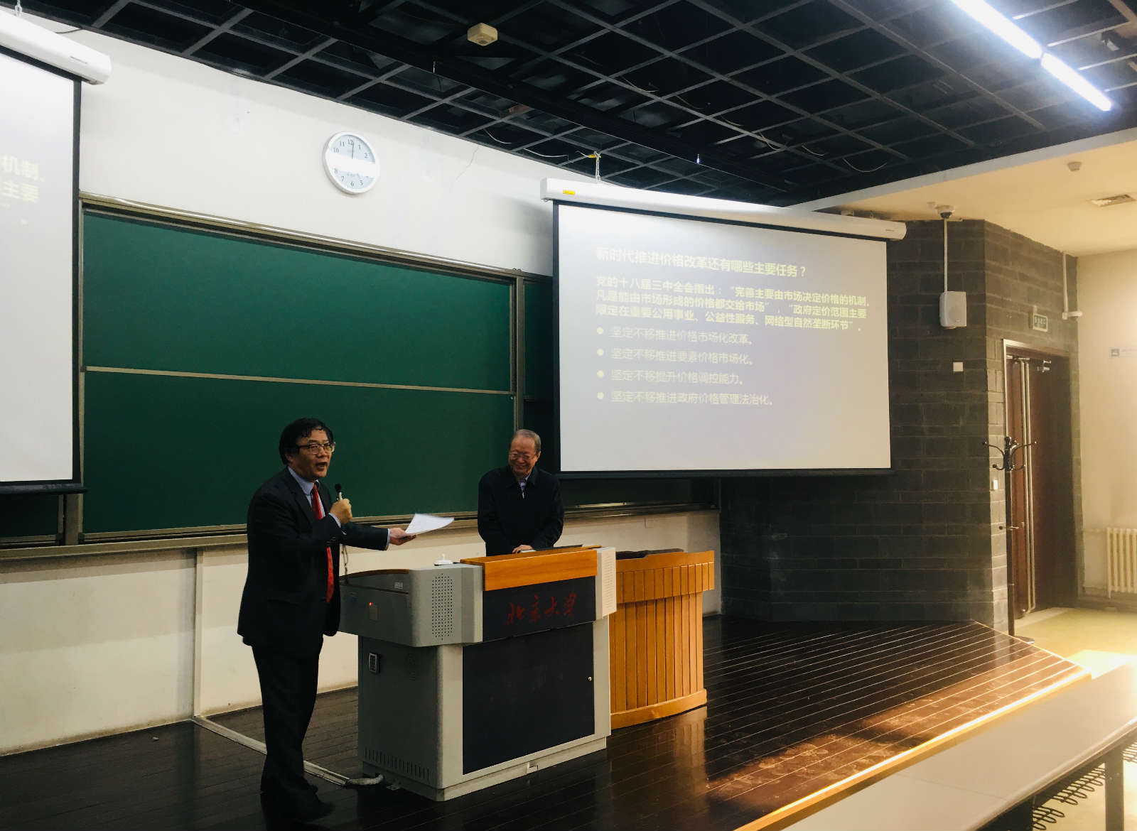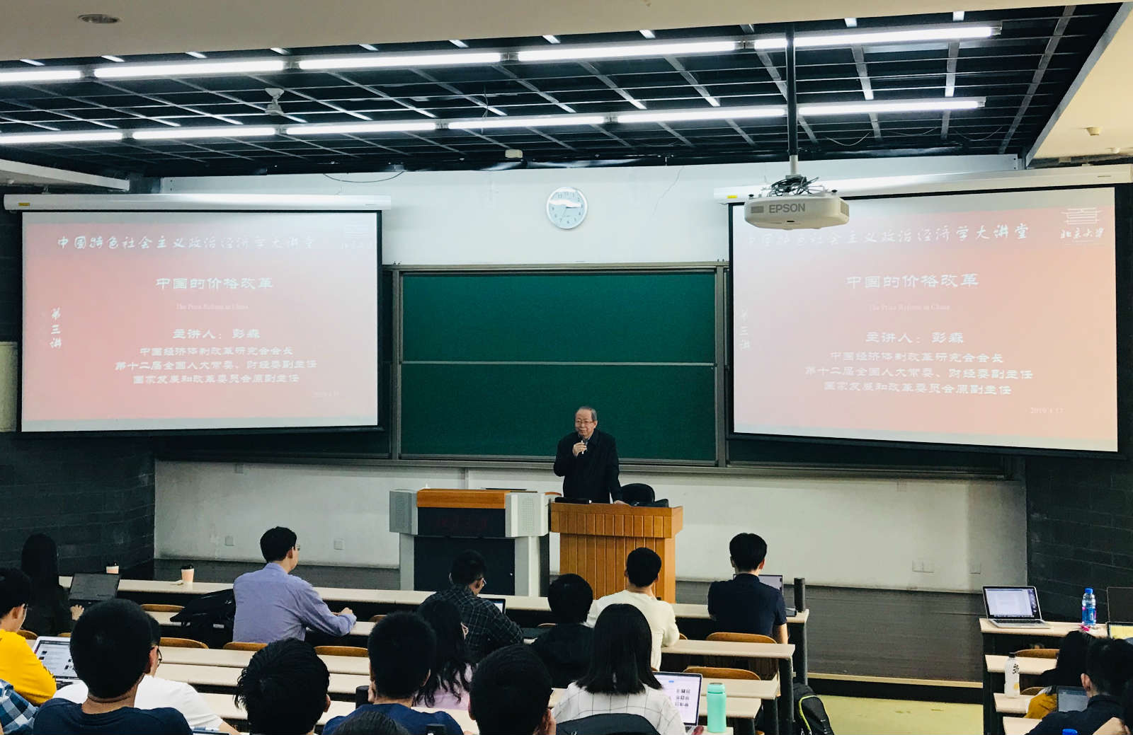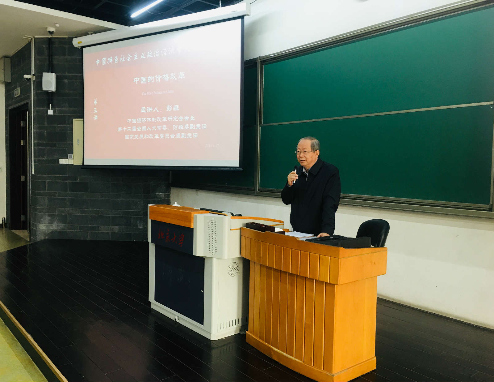 2019年4月17日下午,今年会中国特色社会主义政治经济学研究中心(筹)主办的“中国特色社会主义政治经济学大讲堂”第三讲在今年会jinnianhui李兆基楼105教室举行。中国经济体制改革研究会会长,第十二届全国人大常委、财经委副主任,国家发展和改革委员会原副主任彭森作为演讲嘉宾,以“中国的价格改革”为题,为今年会等院系两百多位师生作学术报告。今年会院长董志勇教授,副院长张辉教授,王大树教授参加。
