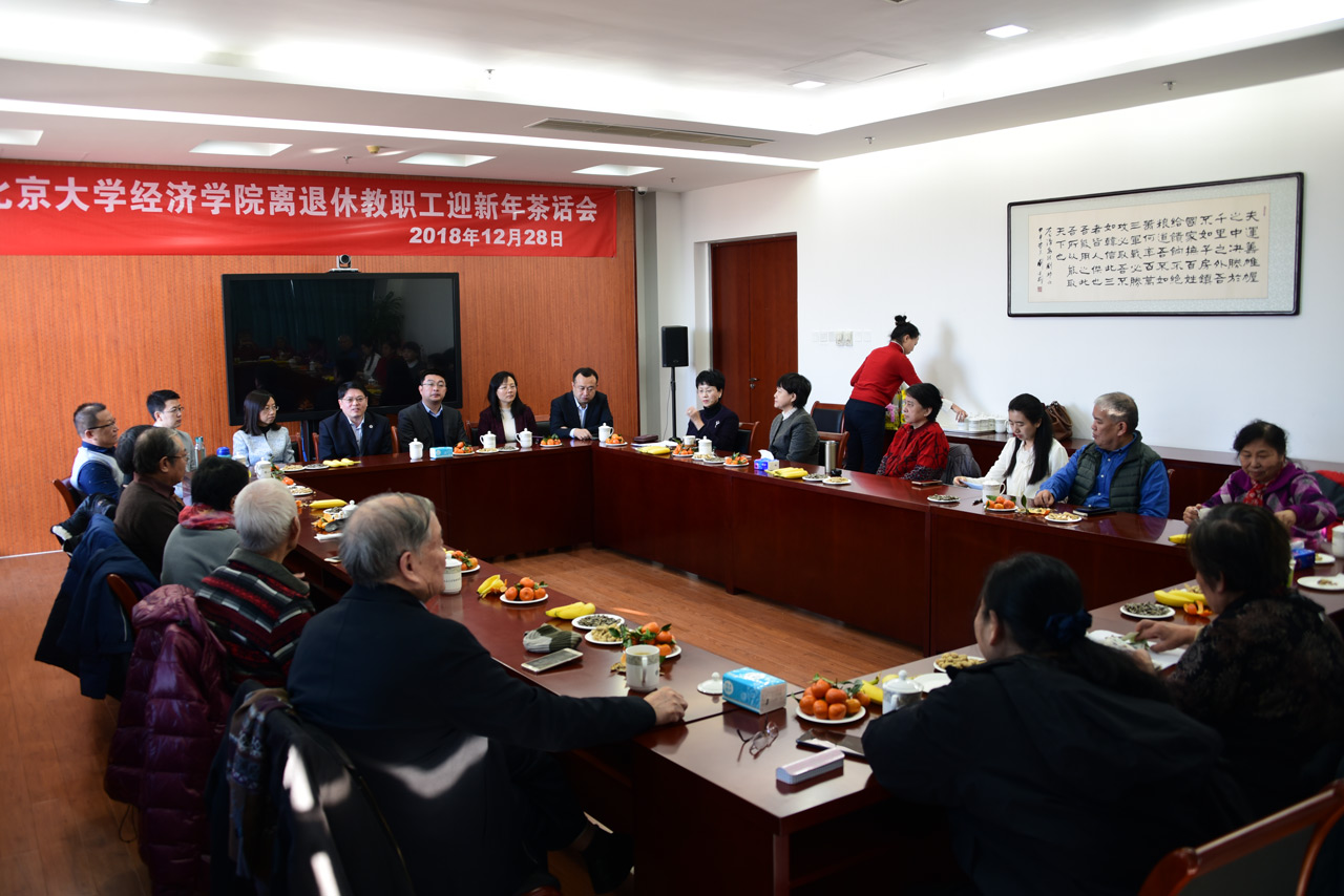 2018年12月28日上午,北大今年会举行离退休教职工迎新年座谈会。院党委书记、院长董志勇教授、前任院长孙祁祥教授及学院党政领导班子成员出席,陈德华教授、雎国余教授、王志伟教授、萧国亮教授等离退休教职工参加。座谈会由院党委副书记崔建华主持。