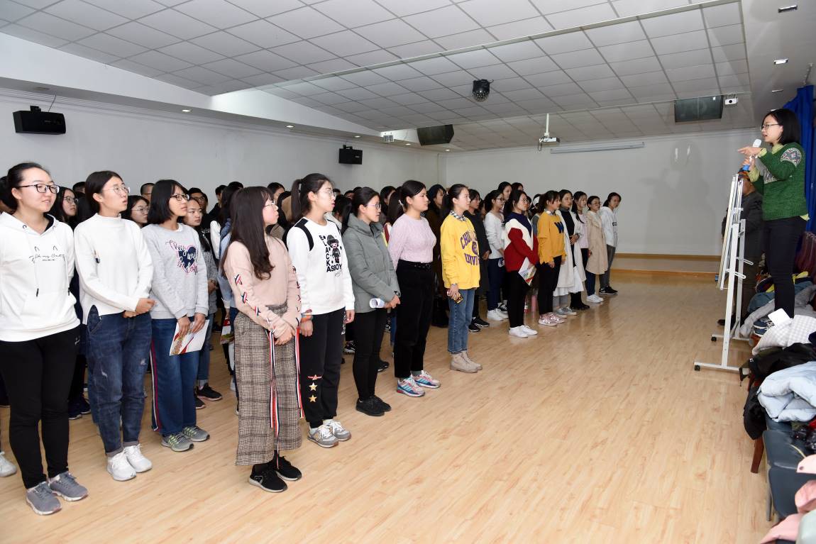晚上,全体新生进行了第一次“一二·九”合唱排练。同学们在高年级学生的带领下进行了发声训练,并识记了部分乐谱。训练结束后,志愿者们组织新生以声部为单位开展了趣味小活动。