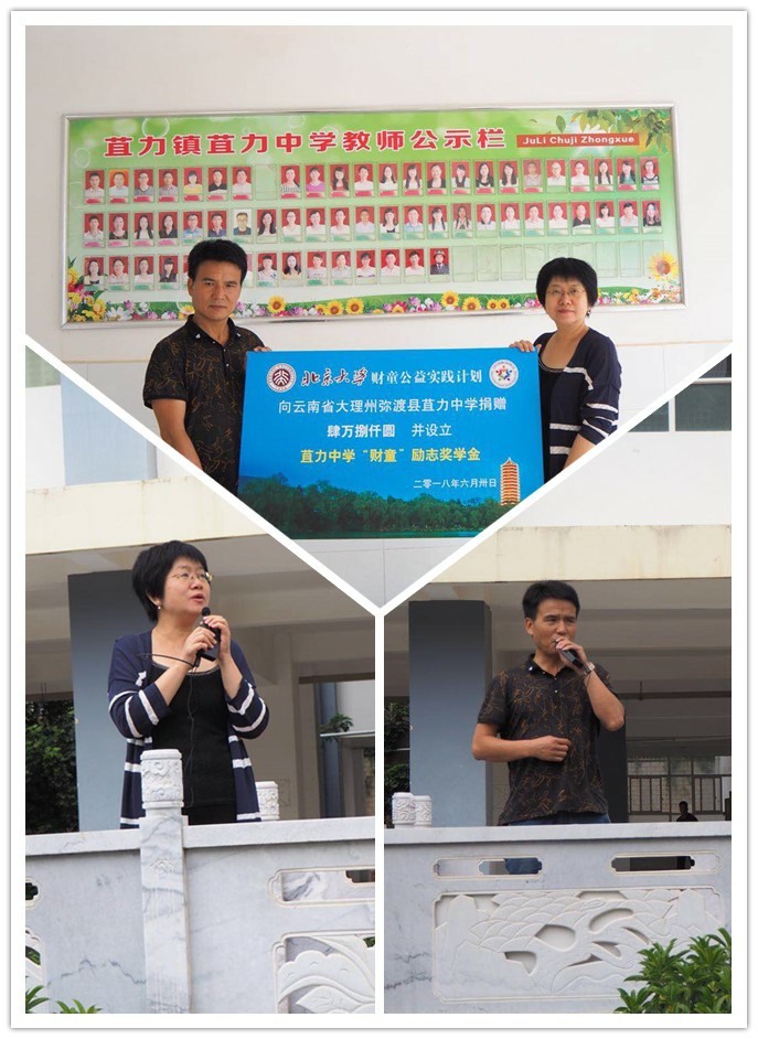 7月2日上午,苴力中学进行了每周例行的升旗仪式。仪式上,还特别举行了“财童”励志奖学金的捐赠。奖学金共4.8万元,将分若干学期,奖励初一、初二成绩优异的学生。苴力中学赵校长对“财童计划”的捐赠表示衷心的感谢,“财童计划”负责人袁诚副教授也对中学生们寄予美好的期望。