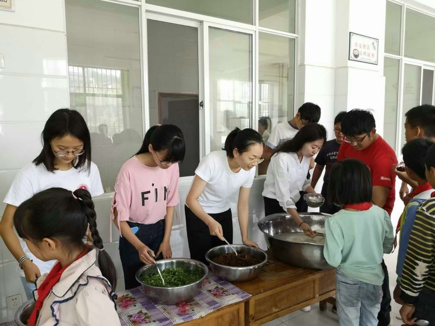 支教成员不仅仅在课堂上与孩子们进行接触,他们还积极参与到孩子们的日常生活中。下课时,他们与孩子们一起玩游戏;吃饭时,他们主动承担为孩子们打饭的任务。通过互动,大家的越来越亲近。