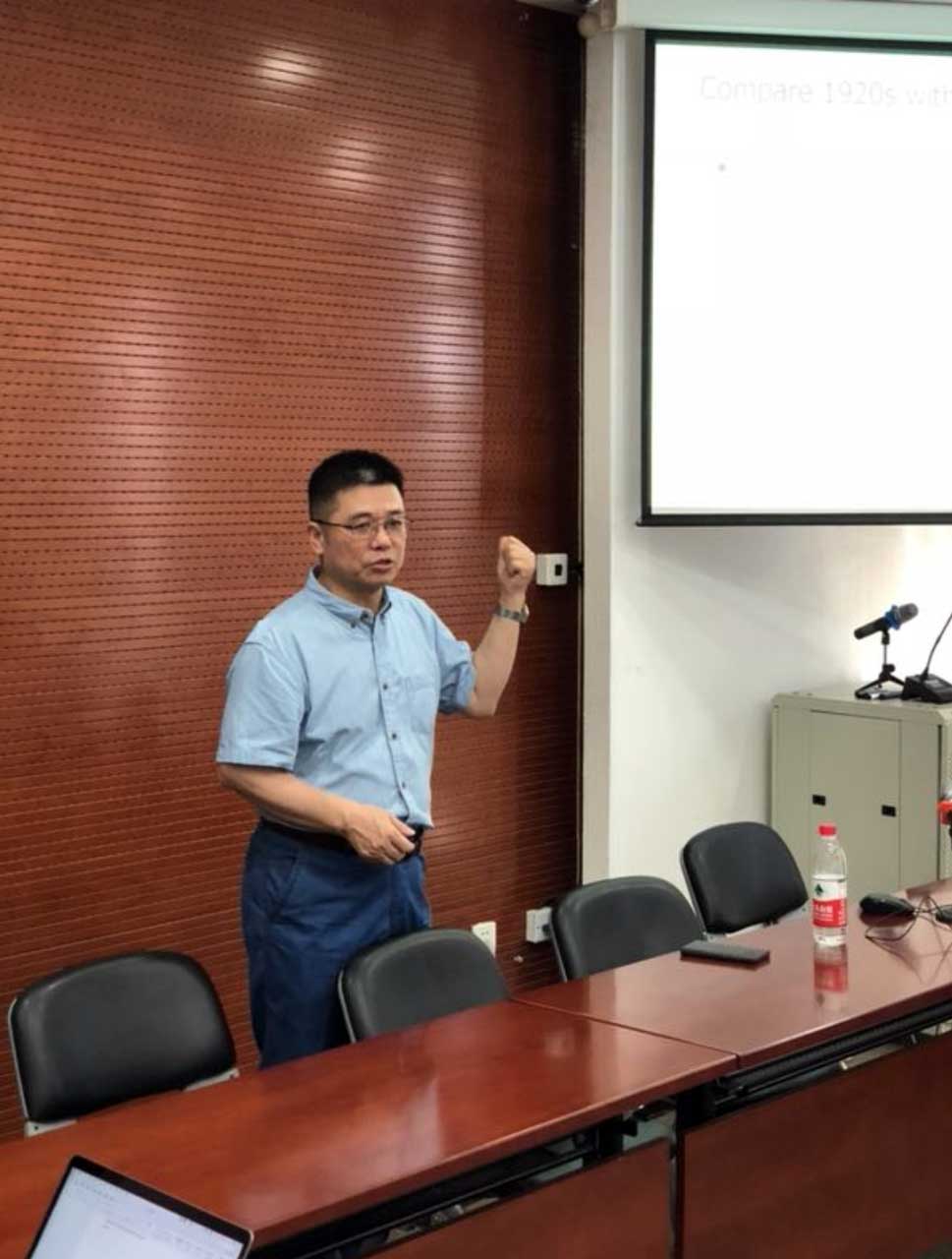 在点评阶段,郑京海认为,要素结构对经济增长的贡献,通常情况下是较为稳定的,所以可能不易改变。同时中国虽然具备较高的经济增长潜力,但同时也需要考虑到发展质量、环境保护等因素,所以对于具体的经济增长率维持在多少合适,还是要具体分析。周建波教授从中国道路引申到,中国模式是有为政府和有效市场的结合,既然美国经济增长模式出现了问题,中国自然需要找到一条适合自己的发展道路。其后,师生就中美经济发展相关问题与郑京海进行了热烈的探讨与交流。