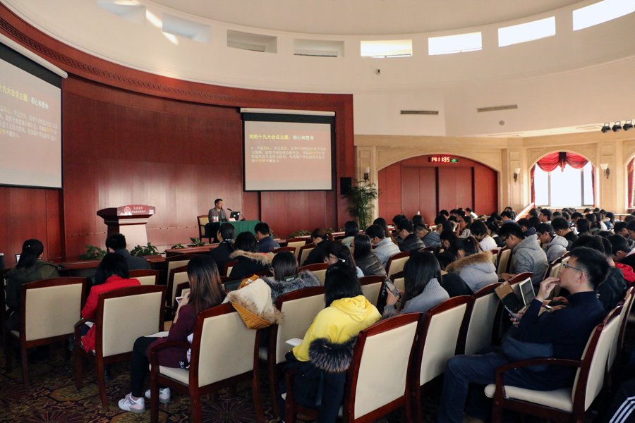 随后,生动精彩的“学习领会党的十九大报告精神”专题辅导报告正式开始,陈培永从新的历史方位、新的主要矛盾、新的奋斗目标、新的行动指南、十四条基本方略和开启全面新征程六个方面对党的十九大报告进行解读。陈培永指出,学习贯彻党的十九大精神,要紧扣初心、使命、新时代、中国梦等主题,要领会新时代的内涵及其体现出的精神与气魄;新的主要矛盾意味着中国社会进步的同时,也意味着更为艰难的发展任务和更美好社会的发展目标,体现了人民群众对民主、法制、公平、正义、安全、环境方面的诉求;要深刻把握小康—现代化—中国梦—共产主义奋斗目标的历史性变迁,明确新时代中国特色社会主义思想的历史方位、理论发展、核心课题和基本框架,把握八个明确、十四条基本方略,进行伟大斗争、建设伟大工程、推进伟大事业、实现伟大梦想,开启全面新征程。陈培永提出,看到问题并批判、认识成就并肯定、提出建设性意见是认知的三个层次,希望同学们走出看问题矛盾众多、问原因归咎体制、寻方法无计可施的“多一无”的认识困局,勇于担负责任,关注社会热点,回应社会关切,探寻解决之道。