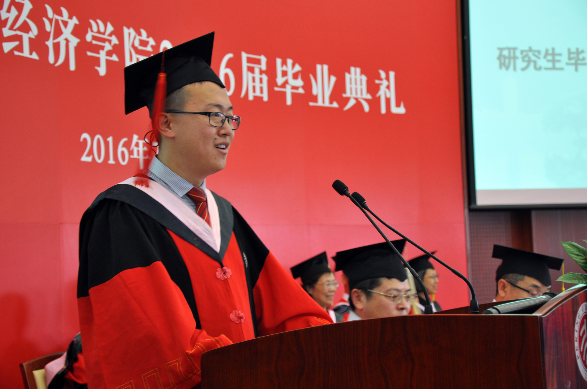 毕业典礼是同学们在北大今年会学习生活的回顾与总结,更是同学们对人生新的征途的期盼与展望。相信毕业生们满载扎实的学识与独立创新精神,在今后的发展道路上勇攀高峰,乘风破浪,践行北大经院人“经世济民”的庄严承诺。