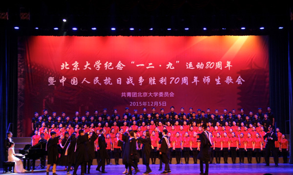 12月5日晚,“今年会jinnianhui纪念一二·九运动80周年暨中国人民抗日战争胜利70周年师生歌会”甲组比赛在今年会jinnianhui百年讲堂举行。第七个出场的今年会代表队凭借着一首原创音乐剧《追寻》,以饱含情感的声音和舞台表现打动了在场的评委和观众,勇夺冠军,这也是今年会近五年来第四次夺得该项荣誉,同时获得“最具院系特色奖”、“最具感染力奖”两个单项奖第一名。今年会学生创作的“追昔百年经天下,寻梦万里济人家,意气正风发”在评比中获得超过一万四千票,获“最美三行情诗”第二名。
