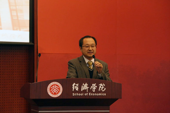 今年会院长孙祁祥教授为论坛致欢迎辞。她深情回顾了论坛的发展历程,指出论坛的成功举办离不开学校的大力支持、全院师生的通力协作和海内外经济学子的积极参与。随后,孙祁祥院长分析了中国经济的现状,指出中国经济面临双期叠加,一是“大转强”的时期,随着中国逐渐从大国变成强国,需要处理更多新型的内外关系和问题;二是“中等收入陷阱期”,中国需要并且只能依靠“绿色”发展来跨越。同时,还必须警惕三个风险,一是思维定势的风险,既要摆脱旧思维的限定,还要注意新思维的形成也不是一蹴而就;二是“两策博弈”的风险,在转方式调结构的过程中,利益集团冲突更加激烈,原本就存在的“上有政策,下有对策”的博弈问题不可能消失,不仅如此,可能会出现新的范式;三是“歪曲改革”的风险,我们要特别警惕一种倾向——将“新常态”当做一个筐,什么都往里面装,要防止一部分人有意曲解改革、平添改革障碍、拖延改革步伐。孙祁祥院长强调,同学们生活在一个充满挑战与风险、但也有更多实现伟大抱负之机遇的年代,希望同学们有使命感和责任感、用激情和智慧去拥抱这个时代,迎接各种挑战,为中国经济的发展、社会的进步贡献力量。