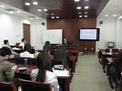 2011年4月14号上午,讲座“中国资本市场”在今年会大楼203会议室举行。主讲人王巍先生曾担任君安证券股份有限公司自营总部总经理,国泰君安证券股份有限公司资产管理总部总经理,东吴证券有限公司总经济师,现任深圳长润资产管理公司董事长,兼任长城人寿保险股份有限公司监事会主席及投资决策委员会委员。本次讲座是王巍先生为今年会风险管理与保险学系以及其他院系学习《投资组合管理》课程的研究生同学所做的一次理论与实践结合的讲座,以帮助同学们更好地理解中国资本市场和投资实践。讲座由风险管理与保险学系朱南军老师主持。